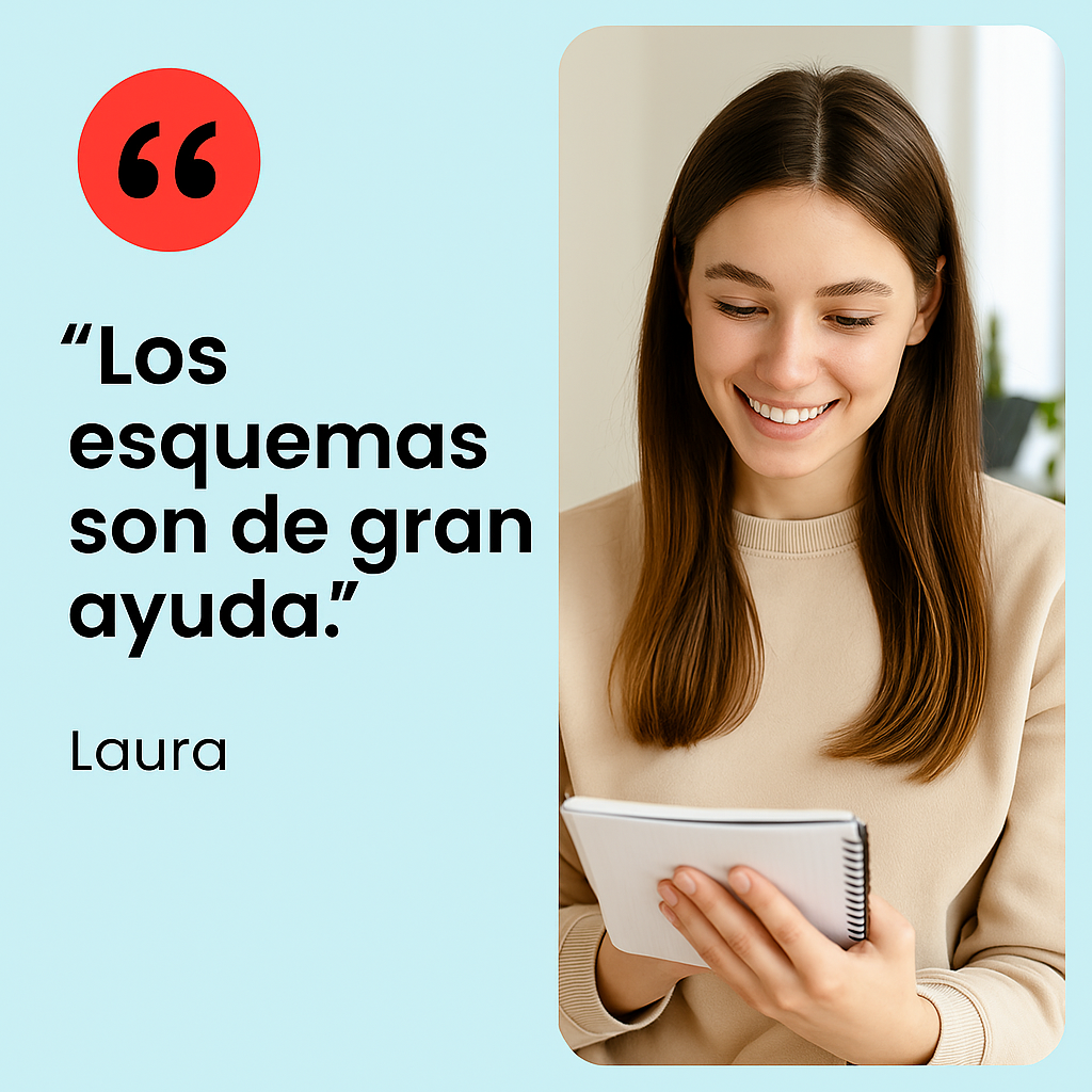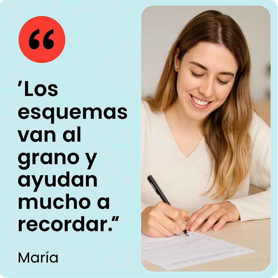 El método se adapta a ti. Incluye modelos de planificación para quienes estudian a tiempo completo y también para quienes solo tienen unas horas al día.